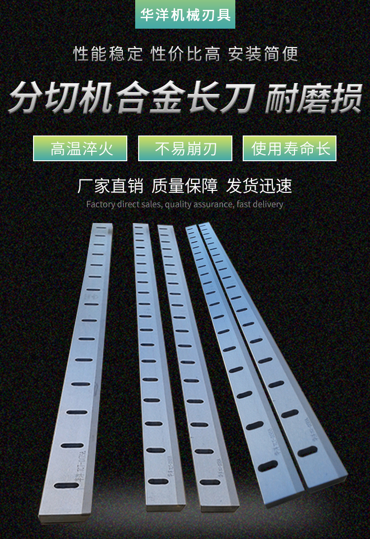 合金長刀全名為高速伺服滾筒分切機銀焊粉末硬質(zhì)合金長刀,是高速伺服滾筒分切機上所使用的一種機械刀片,采用粉末硬質(zhì)合金,經(jīng)過銀焊而成,主要用于對紙張進行分切。
